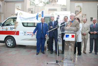 Rotary Club Le Caire-Champollion has offered to Samu Social International Egypt a medically equipped Van Toyota to give assistance to street children, day and night. Consequently, children will be able to receive, on their living spot, medical assistance, psychological support and preventive education. This vehicule was officially handed over to Laure Baudin, Regional manager Samu Social International Egypt, on June 25th 2009, during a cocktail party which took place at the French Embassy in Cairo, in presence of H.E. Jean Félix-Paganon, Ambassador of France in Cairo.